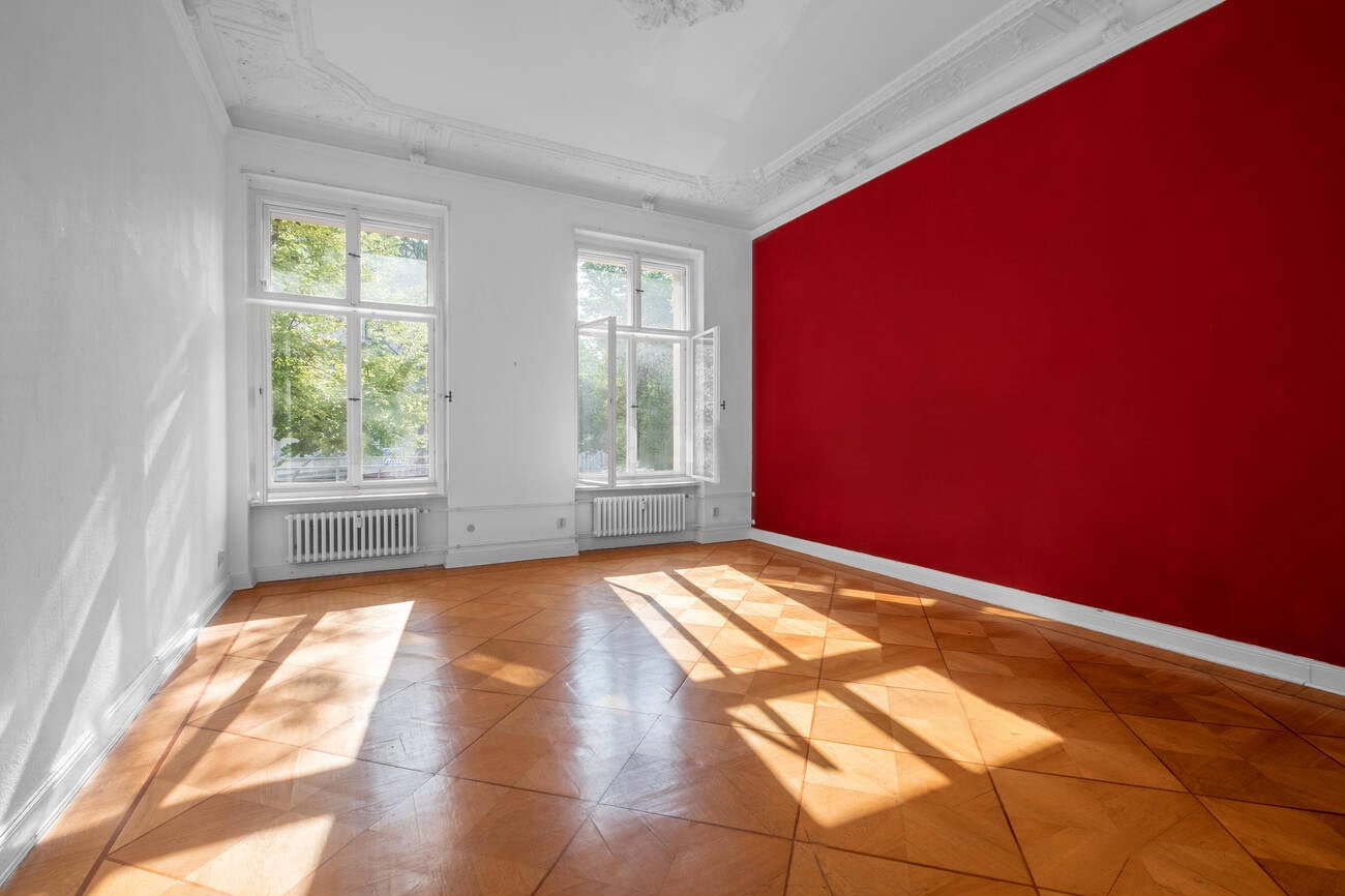 Das historische Parkett wurde sorgfältig abgeschliffen, überarbeitet und mehrfach versiegelt, um den ursprünglichen Charakter zu bewahren. Ergänzt wurde die Neugestaltung durch gezielt gesetzte Farb- und Gestaltungselemente, die den Räumen einen harmonischen und zeitgemäßen Ausdruck verleihen.